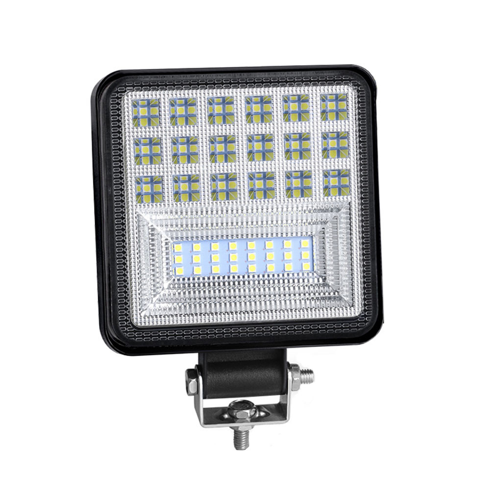 Αδιάβροχος προβολέας αυτοκινήτου LED τετράγωνος με ισχύ 126W και 42 LED με ψυχρό λευκό φωτισμό. Το περίβλημα του είναι από αλουμίνιο και διαθέτει σύστημα που προστατεύει τον προβολέα ακόμα και αν συνδεθεί με λάθος πολικότητα. Μπορεί να λειτουργήσει σε τάσεις 12V και 24V. Η υψηλή του φωτεινότητα τον καθιστούν ιδανικό για διαδρομές off-road, φορτηγά, τρακτέρ, περονοφόρα οχήματα, εσκαφείς, επιβατηγά αυτοκίνητα, ATV κ.α. Κατάλληλος και για ομίχλη ενώ η αντοχή του ξεπερνά τις 30000 ώρες ζωής. Περιλαμβάνονται βάσεις και βίδες τοποθέτησης.