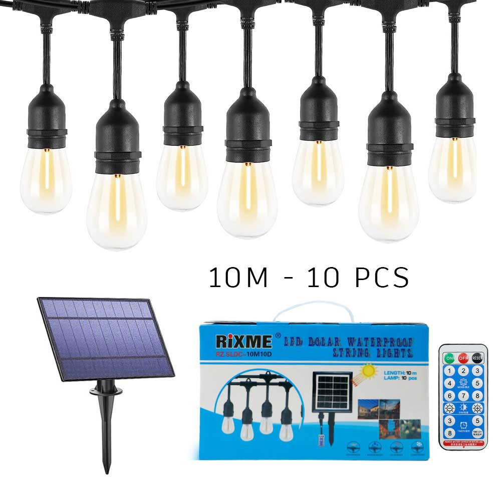 Αδιάβροχη Ηλιακή Γιρλάντα Φωτισμού 10m με 10 Λάμπες σε Θερμό Λευκό Φωτισμό και Τηλεκοντρόλ Rixme RZ-0133